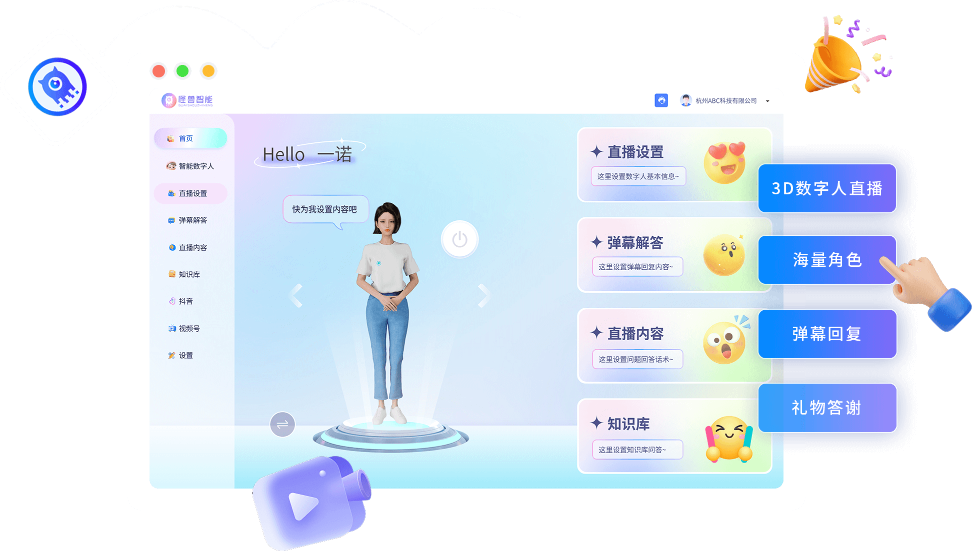 通过怪兽数字人平台可进行个性化多平台直播,支持7*24小时日不落模式,定制主播形象,实时互动。